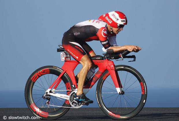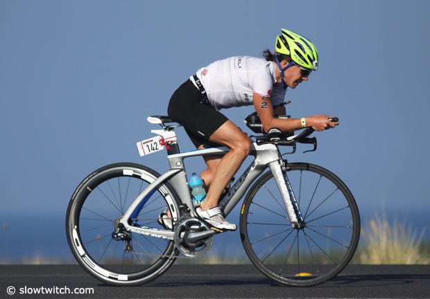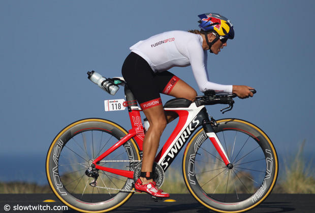 Jodie Swallow led the women out of the water and rode 4:58:48 but she ended up not finishing.