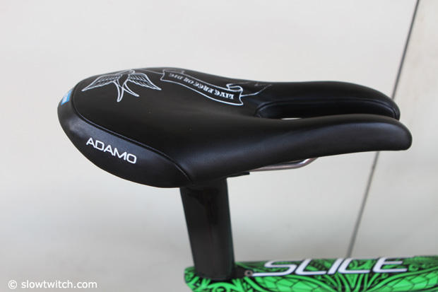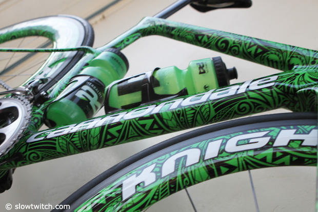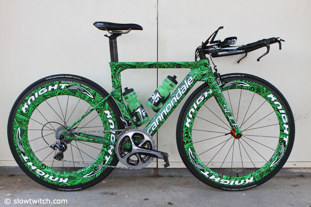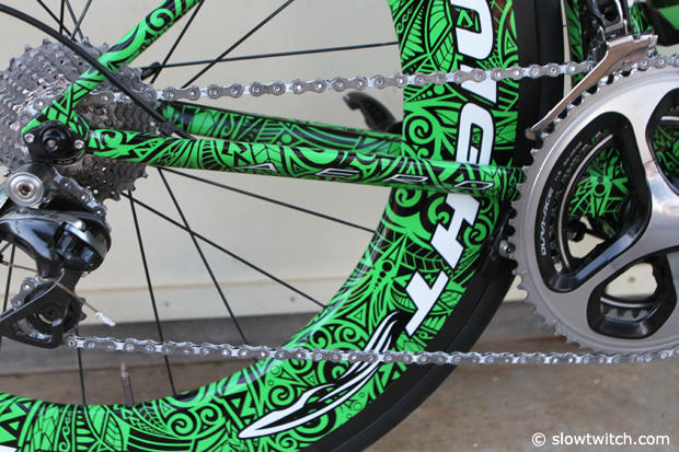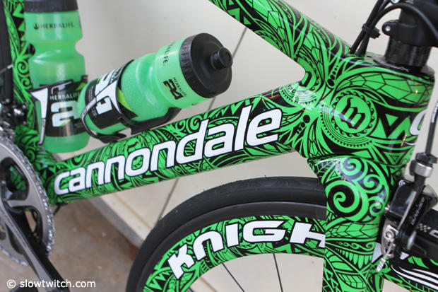 Heather Jackson finished 5th at the 2015 GoPro Ironman World Championship in Kona aboard this custom tribal themed Cannondale Slice, and we took a closer look. We featured a ton of the female pros on their bikes in a gallery we posted a few days back, but this feature is specifically about the Slice of the top American female.