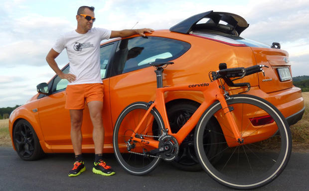 Thomas Hellriegel's nick name was "Hell on Wheels" and it now seems that we should refer to to him as "Hell on Orange." The fast German who won the Ironman World championships in 1997 recently posted this picture on his Facebook page, and he is as looking lean and fast as all of his orange machines. He is still racing some, but is no longer hard core about it. But do not make the mistake of underestimating him.