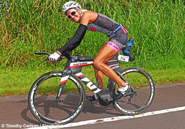 While she is not threatening the women‘s course records, physical therapist and Ultraman rookie Staci Studer quietly increased her lead with a women’s-best 9:42:21 split for the 171-mile bike leg, giving her an accumulated time of 19:43:58 and a 44:32 lead on Katherine Calder-Becker of Montreal, Canada and 1:48:13 over 3rd-place Beth Brewster of Kingston, Washington.