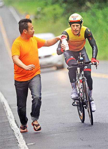 The 171-mile Day 2 bike leg of the Ultraman World Championship left Christian Isakson and Scott McDermott injured in crashes and out of the race. A wind gust pushed women’s leader Staci Studer into a guard rail but she emerged uninjured and managed to finish with the lead. And a tailwind helped most riders in the climb up and over the Kohala range.