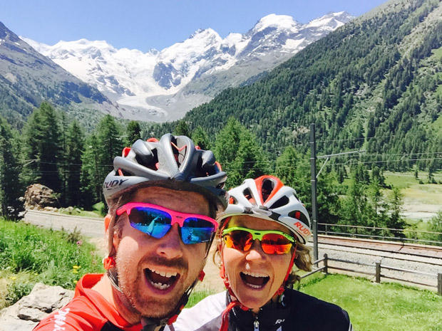 Honey Badger Mary Beth Ellis and husband on vacation in the Alps. Selfie by Eric Olson.