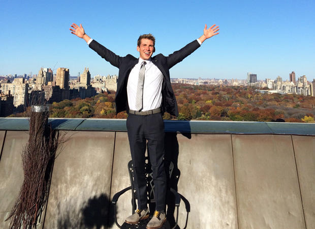 Joe Maloy in formal wear at the New York Athletic Club two weeks after his victory at the classic Noosa Triathlon. Photo taken by a friend with Joe’s smartphone.