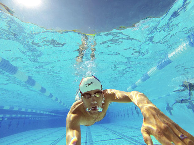 Multitalented Jordan Rapp takes an underwater selfie during a swim workout.