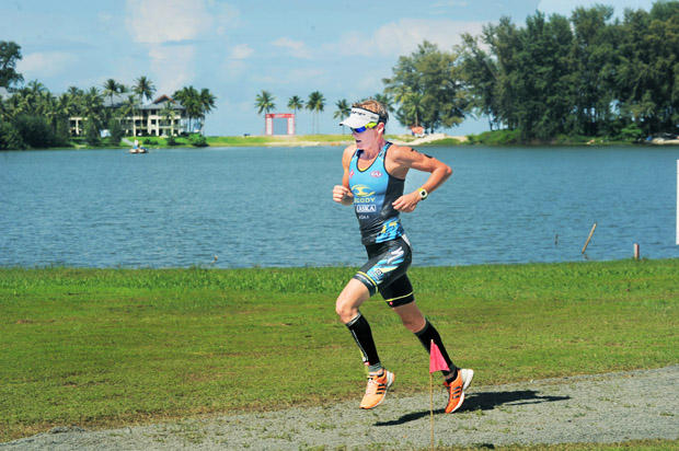 Early on in the bike segment the race was led by a group of five that included all fast swimmers, but it did not take long for Amberger and Montgomery to pull away from the others. Jacobs was riding in third position, but Per Bittner soon took over that spot with a hard riding effort. But up front Amberger and Montgomery extended their advantage with the top two bike splits of the day. Montgomery recorded a 2:06:18 and Amberger a 2:06:27. Crowie who had won this race 4 times in a row pulled out late in the bike segment and that meant a new champion would be crowned for sure. Cyril Viennot charged past Bittner to take over 3rd place and that is how they reached T2. Montgomery 10 seconds up on Amberger, 3:44 on Viennot and 4:10 on Bittner.