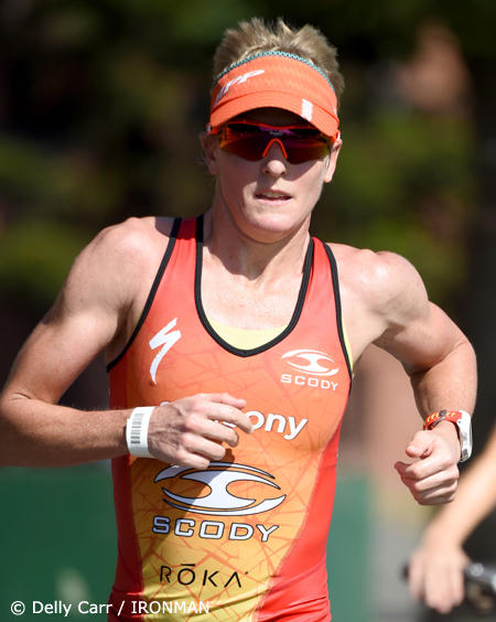 Luxford took over the lead on the bike and Vodickova dropped back, but behind them a storm was brewing. Melissa Hauschildt inched closer and closer and first caught Vodickova eventually reached the bike-run transition with a race best 2:17:47 bike split and 2 seconds up on Luxford. Lisa Marangon was next in transition, but she was almost 8 minutes down, and Vodickova had lost even more time to Hauschildt.