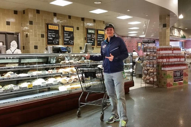 Fleet Feet Maine Running manager, Maggie Poisson, ordered breakfast from Whole Foods for runners returning from their store’s Saturday morning social run.