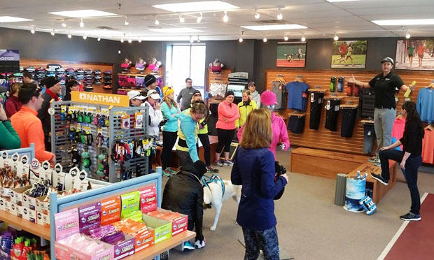 A seemingly endless flow of runners used Fleet Feet as their start and finish point.