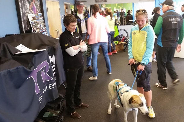 Dogs welcome at Fleet Feet and “Z” was a big hit at the expo.