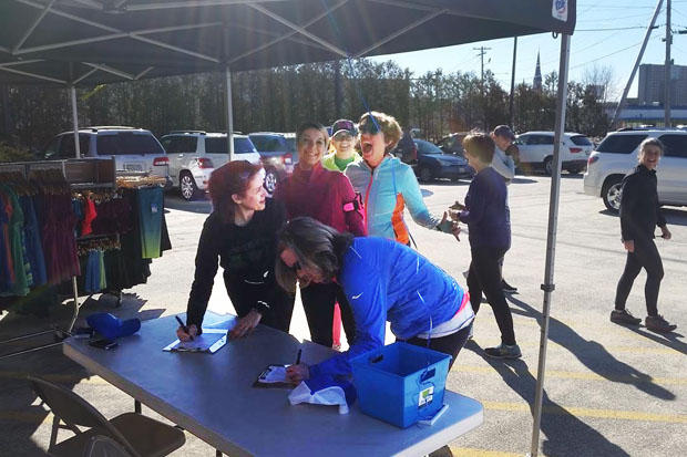 Maggie welcomed runners and invited them to demo shoes from ASICS, Hoka One One and Saucony before leaving on their runs.