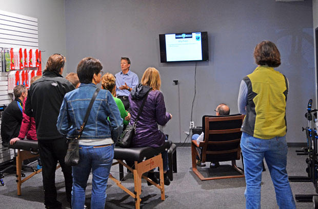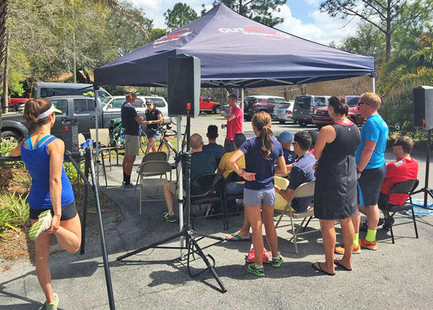 There were 4 Slowtwitch Road Shows taking place on one March 12. Here's a clinic at a Road Show in Tampa, at Outspokin.