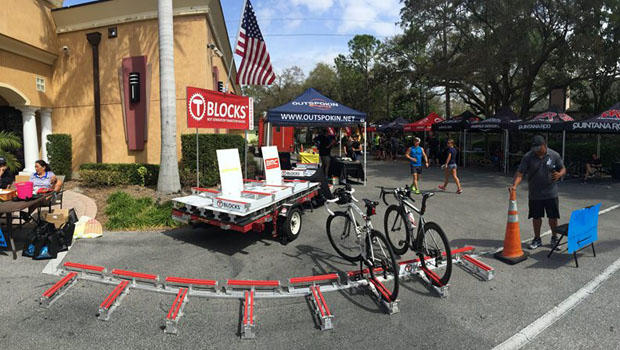 Ubiquitous at Slowtwitch Road Shows are T-BLOCKS Transition Racks. These are the highest-tech, lightest, most portable, easiest-on-bikes, racks I've yet seen.