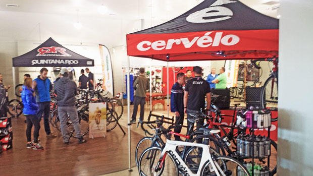 Fraser Bicycle's showroom in Canton, Michigan, is large, and Cervelo and Quintana Roo booths for exhibiting and demoing bikes fit fine inside.