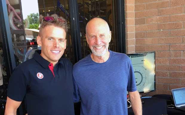 Back to Tempe, Lewis Elliott is one of the hot pros in town. Here he is with Slowtwitch publisher Dan Empfield (Slowman on the Slowtwitch Reader Forum).