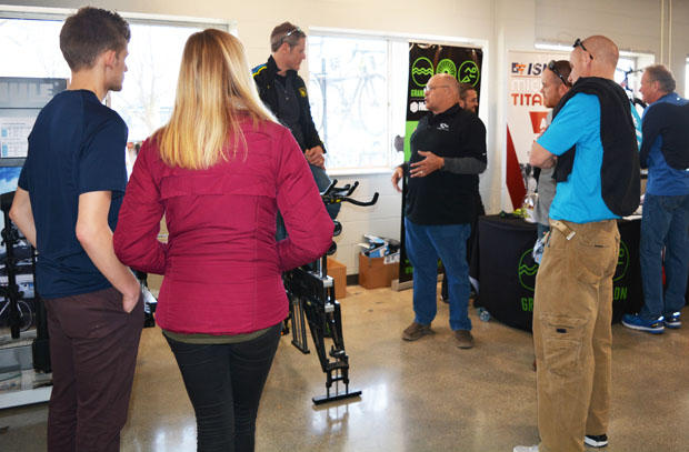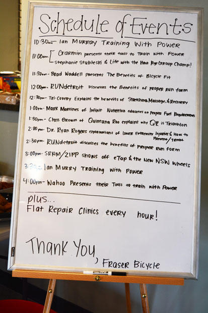 Ian Murray clinics at the Fraser Bicycle Road Show on power. Pioneer, Powertap and Quarq power meters feature at a lot of Road Shows.