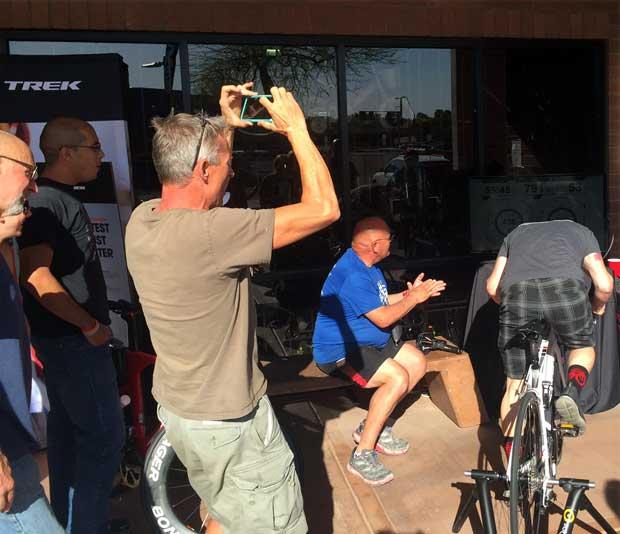 Pioneer was at the Tempe Road Show, and it's very popular power meter was on a bike, on a trainer, a big screen monitor in front, and a contest to see who could produce the most watts.