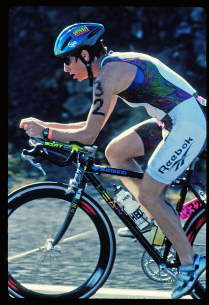 Erin Baker was Paula Newby-Fraser’s greatest rival at Ironman Hawaii, winning Kona in 1987 and 1990 and taking 2nd in 1988, 1991 and 1993. Baker won the inaugural ITU Olympic distance World Championship in 1989. She won the Nice International Triathlon in 1985 and 1988, the 1991 ITU Duathlon World Championship and Powerman Zofingen in 1992 and 1994. While those may have been her most prestigious wins, but Baker also won 104 times of 121 triathlons entered.