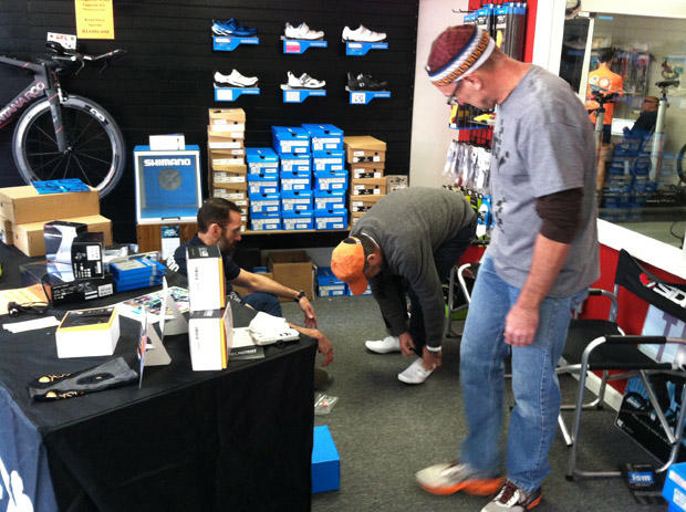 Above is Shimano, slingin' its excellent cycling shoes to customers.