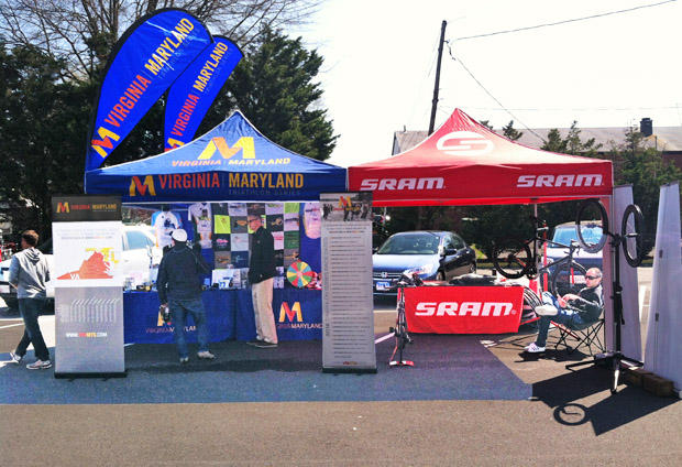 There are 2 kinds of exhibitors: vendors and local stakeholders. Above is SRAM alongside VTSMTS, a local race producer.