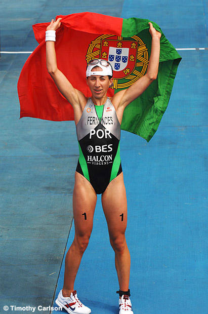 Portugal’s shining triathlon star is Vanessa Fernandes. She placed 8th at the 2004 Olympics and won silver at the 2008 Olympics in Beijing. She won gold at the 2007 ITU World Championship and silver at the 2006 ITU World Championship. She won the 2006 and 2007 ITU World Cup season series and won gold at the 2007 and 2008 ITU Duathlon World Championships. During her prime she won 12 straight ITU World Cup victories in 2005-2006.