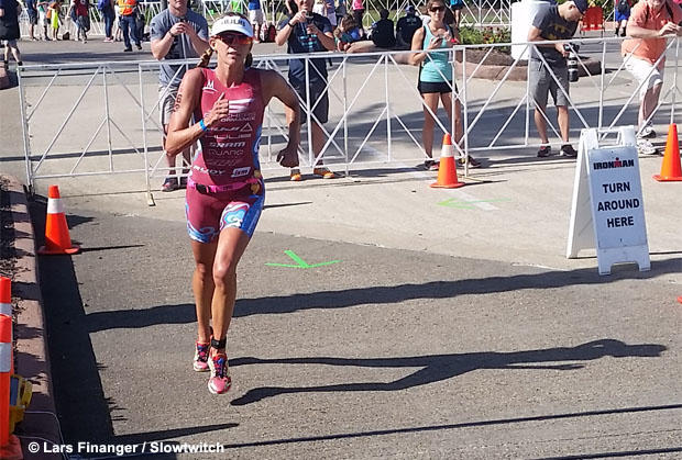Robertson made up gobs of time and passed dozens of competitors after a 32:28 swim with a women's-best 2:18:42 bike split and women’s-best 1:20:14 run to earn the final spot on the podium.