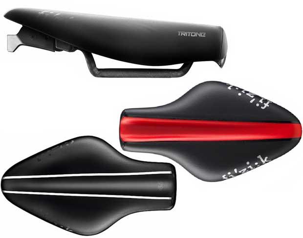 I would definitely have the fizik Trinone in my fit studio. This is not a noseless or split-nose saddle, it is a truncated saddle. The front is just hacked off. There is a deep valley in the saddle. There are 2 widths to this saddle, 55mm and 65mm (above the red groove is the 55mm and the black groove is the 65mm version). I've polled more than a dozen very good triathlon retailers and none of them know this. Either the messaging is bad on this saddle, or the listening is bad. I would absolutely have both widths of the Tritone in my retail fit studio.