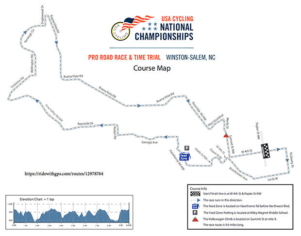 At the end of this month the 2016 US Pro Road Cycling National Championships will take place in Winston-Salem, NC and here are 2 videos from the course. The Volkswagen Para-Cycling and Masters USA National Championships also take place around that time but are not using the same course.