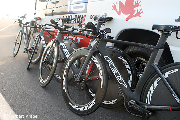 Felt team bikes lined up for the women's race, which started about an hour after the men's race.
