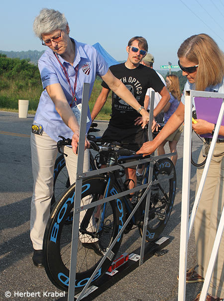 Earlier that day bikes were pre-checked by the UCI to make sure they complied with the rules.