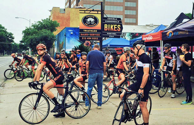 ATC hosts a weekly hammerhead group ride with 30 and 50 mile options, dubbed the ATC World Championship, but riders of all skill levels congregate at the shop to start and reconvene afterwards for breakfast tacos.
