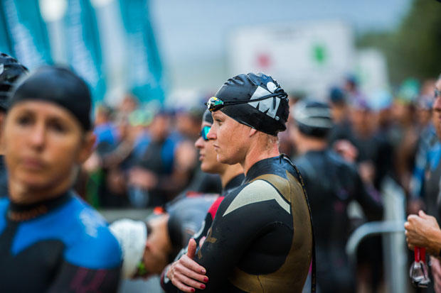 Only 10 women started the pro race, and in the rough surf, that left most athletes swimming all alone for 3.8km.