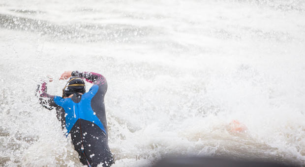 Race day was a huge change for athletes that showed up even well in advance of race day. For most of the lead in, the swim course in Palm Cove was like a giant swimming pool. But on race day, it was more like a giant washing machine.