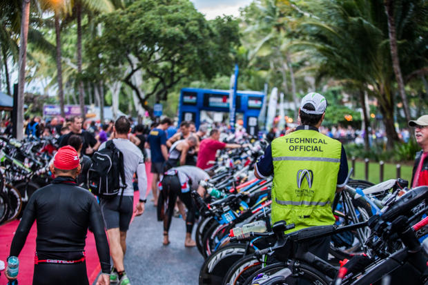 With two races and a relatively limited esplanade for transition, T1 can be a very long walk. But Cairns rolled out the red carpet – a lot of it – for the athletes.