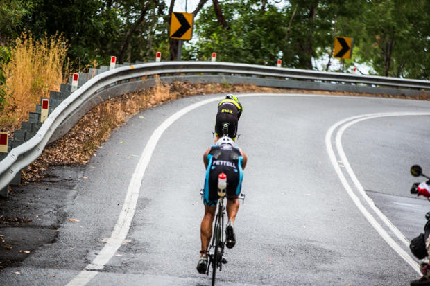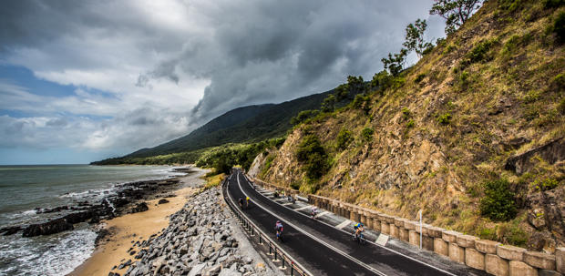 The Cairns bike course is deceptively hard, gaining relatively little elevation in any one go, but the road from Palm Cove to Port Douglas is constantly rolling and also has constant wind off the ocean.