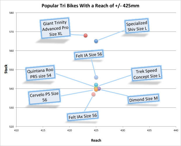 It's been many years since I've catalogued the positions of pro triathletes, and I've decided it's time to do it again. Certainly there is more to a bike position than Pad Y and X. Just as important are the hips fore/aft over the bottom bracket and the handlebar elevation as a function of seat angle and seat height. But the nice thing about Pad Y/X is that we can prescribe bike solutions from it. If I know your Pad Y/X I know precisely what bikes you can ride in exactly the appropriate front end (handlebar/stem) configuration.