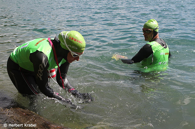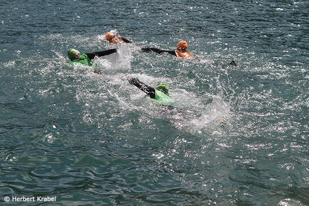 The mixed Swiss team of Jean-Claude Besse and Cendrine Gerosa were in hot pursuit and they used neither pull buoys nor paddles.