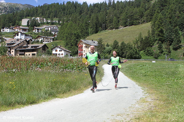 The Italian-German mixed team of Hannes Hofer and Alexandra Becker giving chase.