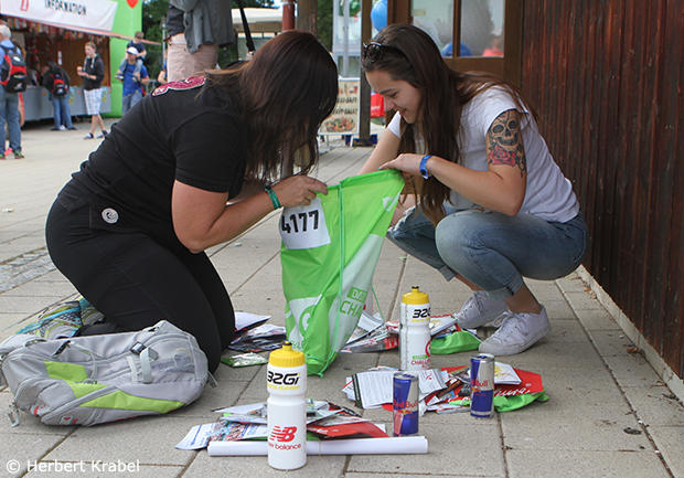 Simone Reinhart (Worms, Germany) and Johanna Höcker (Rheda-Wiednbrück) were busy distributing their relay team stuff. Their male team mate however does not arrive until tomorrow.