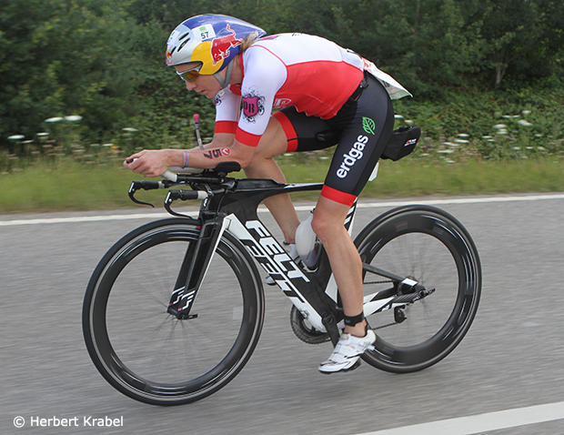 Prior to the race some folks had predicted that Frodeno's friend and training partner Nick Kastelein might be pacing the German Wunderkind through the swim in the Europakanal, but Frodeno quickly dropped all other competitors including Kastelein and built up a 90-second lead by the time he came out of the water ahead of defending champion Nils Frommhold and Kastelein. His 45:22 swim split was just about one minute quicker than the 2011 time of Andreas Raelert.