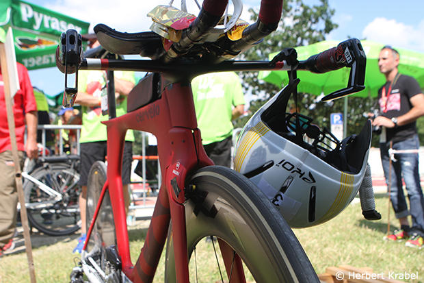 Tyler Butterfield right after the race with his Cervelo P5 super bike.