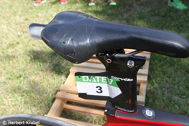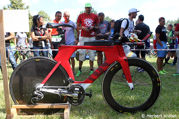 Tyler Butterfield came to the 2016 Datev Callenge Roth with fitness doubts after a lengthy injury time, but he finished 6th aboard this distinctive set up Cervelo P5 with Shimano, Mavic, SRM, and CeramicSpeed components.