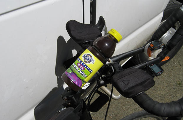 Evensen had twenty 340 mg salt tabs in his bento box during the race in Whistler. In the back of his bike jersey Evensen carried 20 more salt tabs, a gel flask holding 10 ounces of Powerbar Strawberry Banana gels, and 10 more packets of the same gels.