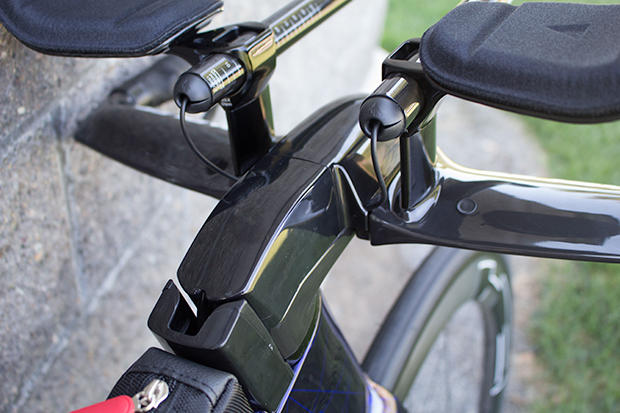 Culprit actually had introduced variations of its Legend model with disc brakes dating back as far as 2013, but the brand never got any traction and word has it that they no longer produce any frames and will focus on components. In 2013 Ceepo also offered a disc brake on their Viper model, but that was only on the front and not on the back. Thus maybe this PARLEE TTiR is indeed the first real product with dual disc brakes and thru axles. But it is expected that we will see a few more disc brake equipped triathlon bikes roll out in the next months.