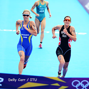 Spirig surrendered the gold but finished strong for the silver, 5 seconds ahead of a battle for the bronze. Spirig became the first woman to earn multiple medals in triathlon. Switzerland has taken a medal in 4 of the 5 Olympic Triathlons, missing only Beijing.