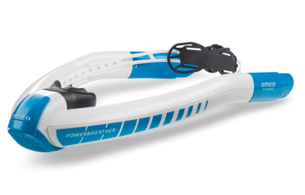 These center-mount or symmetric snorkels are an acquired taste. You have to get used to any of them. The Ameo Powerbreather I’m now using has its idiosycracies: You need to place the rear-fixing twist-lock closure at a rather precise spot near the top of the head to keep it in place while pushing off the wall; after flip-turns clearing the water is easier than with typical center-mount snorkels but does take a bit of getting used to; because the device attaches to positively to your head you need to know to push directly up with the mouthpiece if any water gets in and you panic (you can’t just pull the mouthpiece forward to take it out of your mouth).