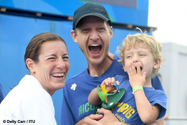 Nicola: Yannis was with Reto watching the race (even if maybe spending more time playing at the beach right there and enjoying the Copacabana :)). I saw them straight after the award ceremony and it was probably the best moment, to share everything with the two persons who had supported me most and without their help I would long be retired. Of course Yannis can touch and hold the medal.