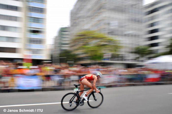 Nicola: Of course a break would have been the best race scenario. I had been talking to Flora Duffy before the race to see if we could try to break away together. In my eyes she is the most explosive one on the bike so she has the best chance to break away. But I am faster over 40km so I would have ridden her down if she would have broken away on her own. Both of us were not afraid to work hard on the bike. Therefore it would have been perfect to break away with her. We tried once, but it didn't work. I never saw her near the front again except the one time where I [made] a small break [30 meters] and she rode me down. A common sponsor said after the race that [Duffy] felt she didn't have the legs on race day. Helen [Jenkins] and Sarah [True] both also had problems on race day. I think the course was too technical for Katie Zaferes, and Non [Stanford] was not fast enough, so there was no one who could really help me initiate a breakaway. Each time someone other than myself was leading, the pace slowed several km/h. While a breakaway didn't happen, by accelerating out of every corner and keeping the pace high, I could still use my strength on the bike to make everyone tired. Triathlon is an individual sport, therefore I never rely on others and always make sure I can have an impact on the race on my own.