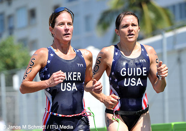 Liz: Yes, the guide cannot be a step ahead of the athlete during the run and cannot assist by giving a draft advantage during the swim.