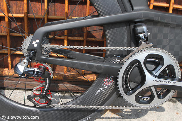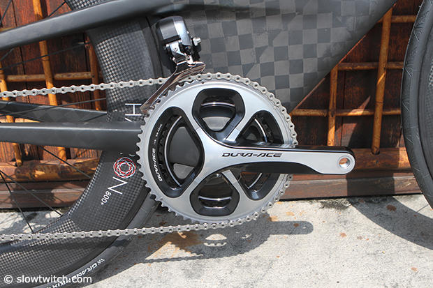 There are Shimano Dura-Ace drivetrain components throughout, and the seatstays are very low similar to the Felt IA frames.