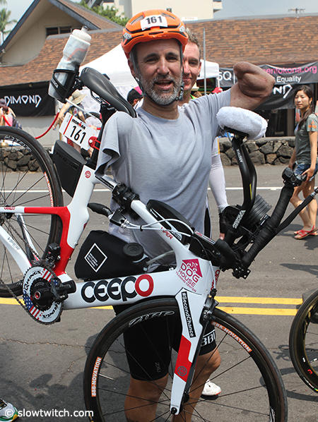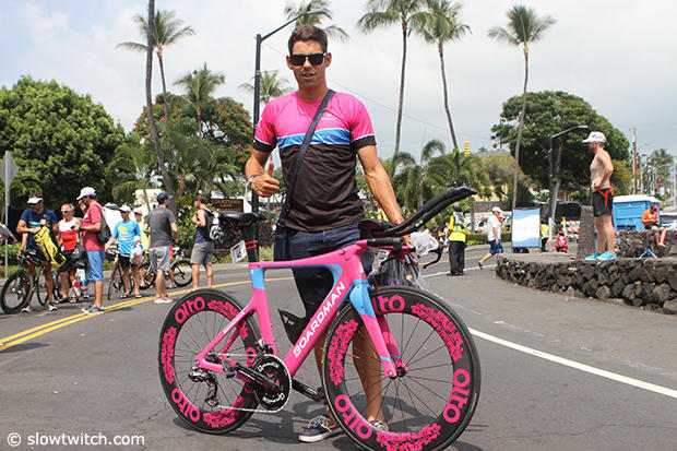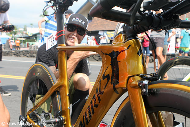 Moto GP racer Ben Bostrom qualified for Kona and he has Dave Mirra on his bike and the name Dave Mirra on his bib number.